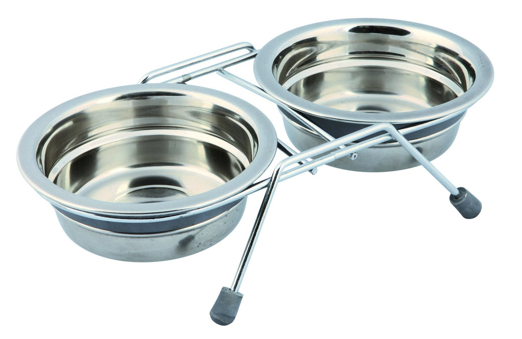 • 2 stainless steel bowls with stand